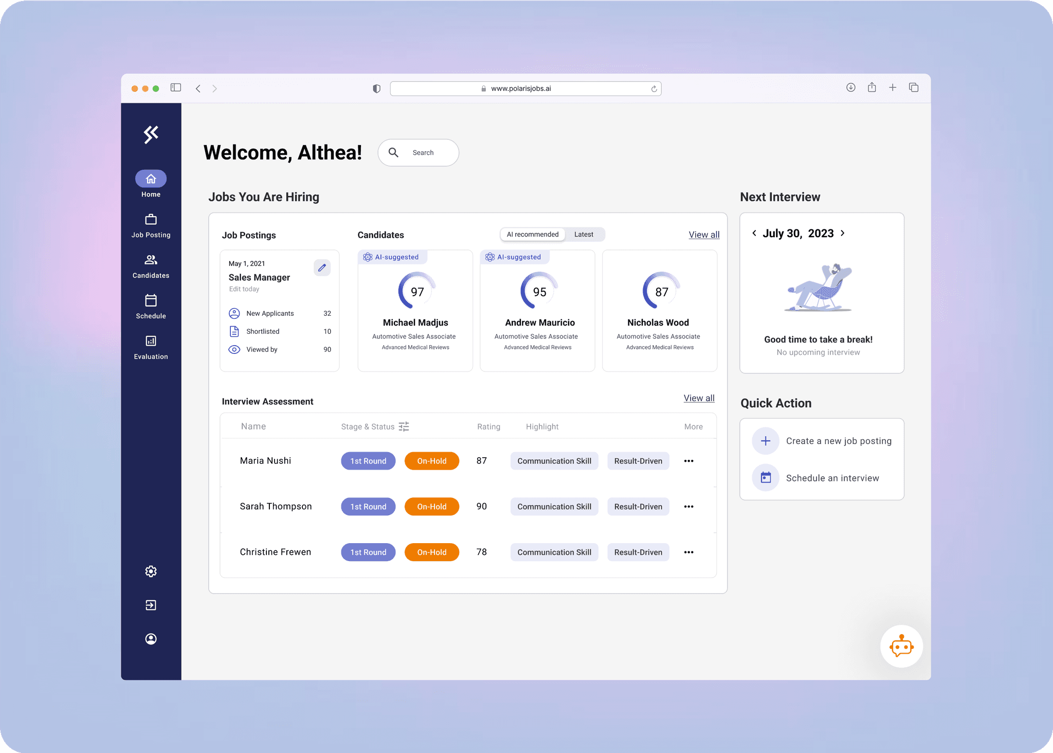 AI Chatbot: 24/7 Customer Support and auto interview Scheduling, FAQ assistance.