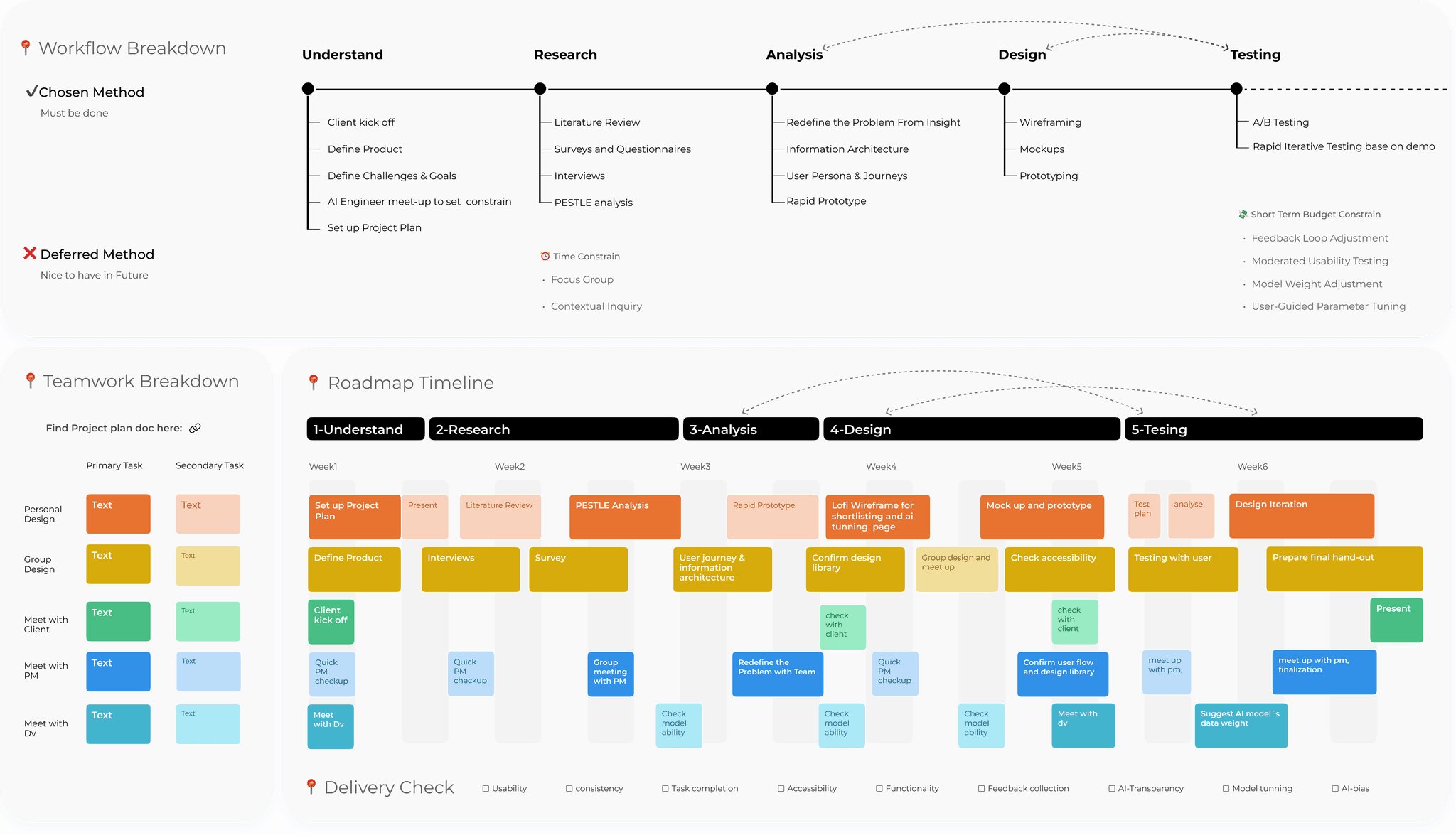 We defined feature deliverables for the MVP stage using Product Roadmap.