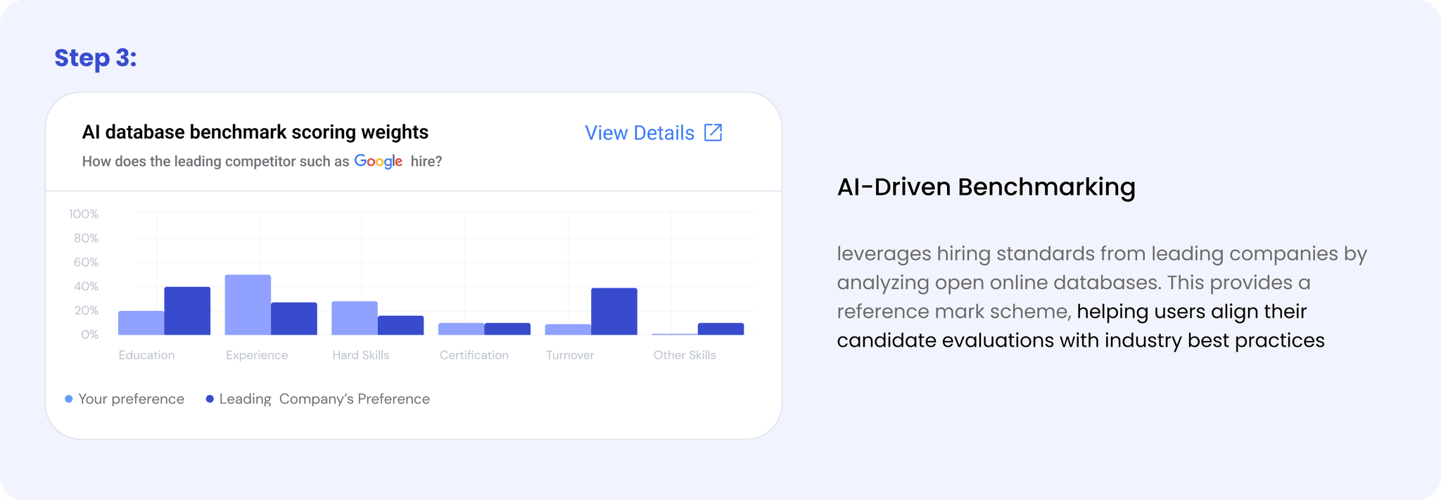 4- Leveraging Big Company Hiring Standards: AI-Driven Benchmarking uses leading companies' hiring standards to provide entrepreneur a professional hiring framework.